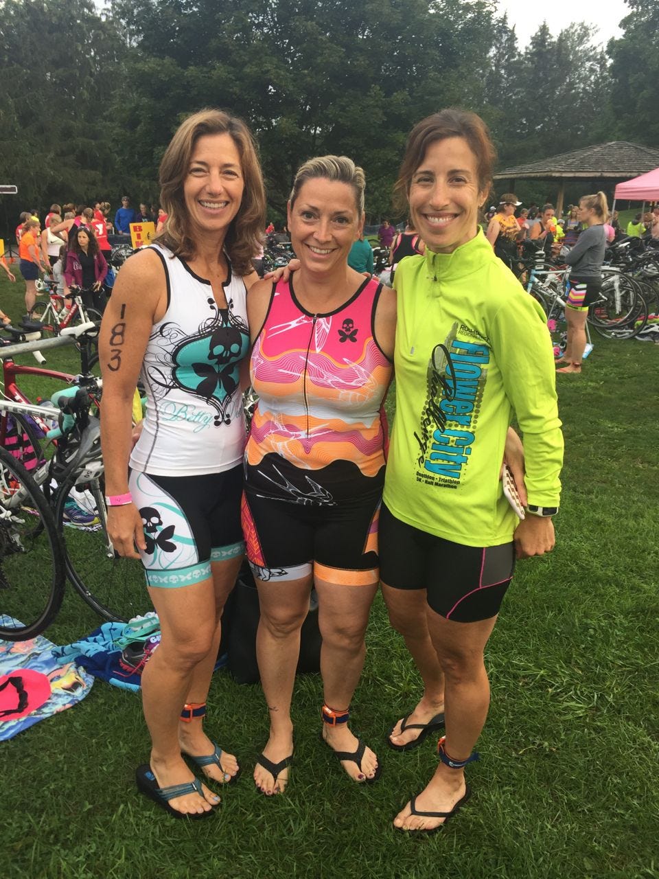 My friend Lynn does this event every year and she finally talked me into it last year. I was SO nervous about driving for a triathlon and doing a swim that requires you to get into and out of a pond TWICE but it turns out that I really like this race. It is a short jaunt up to Syracuse and the race benefits breast cancer. It is a supportive and fun atmosphere of great women!