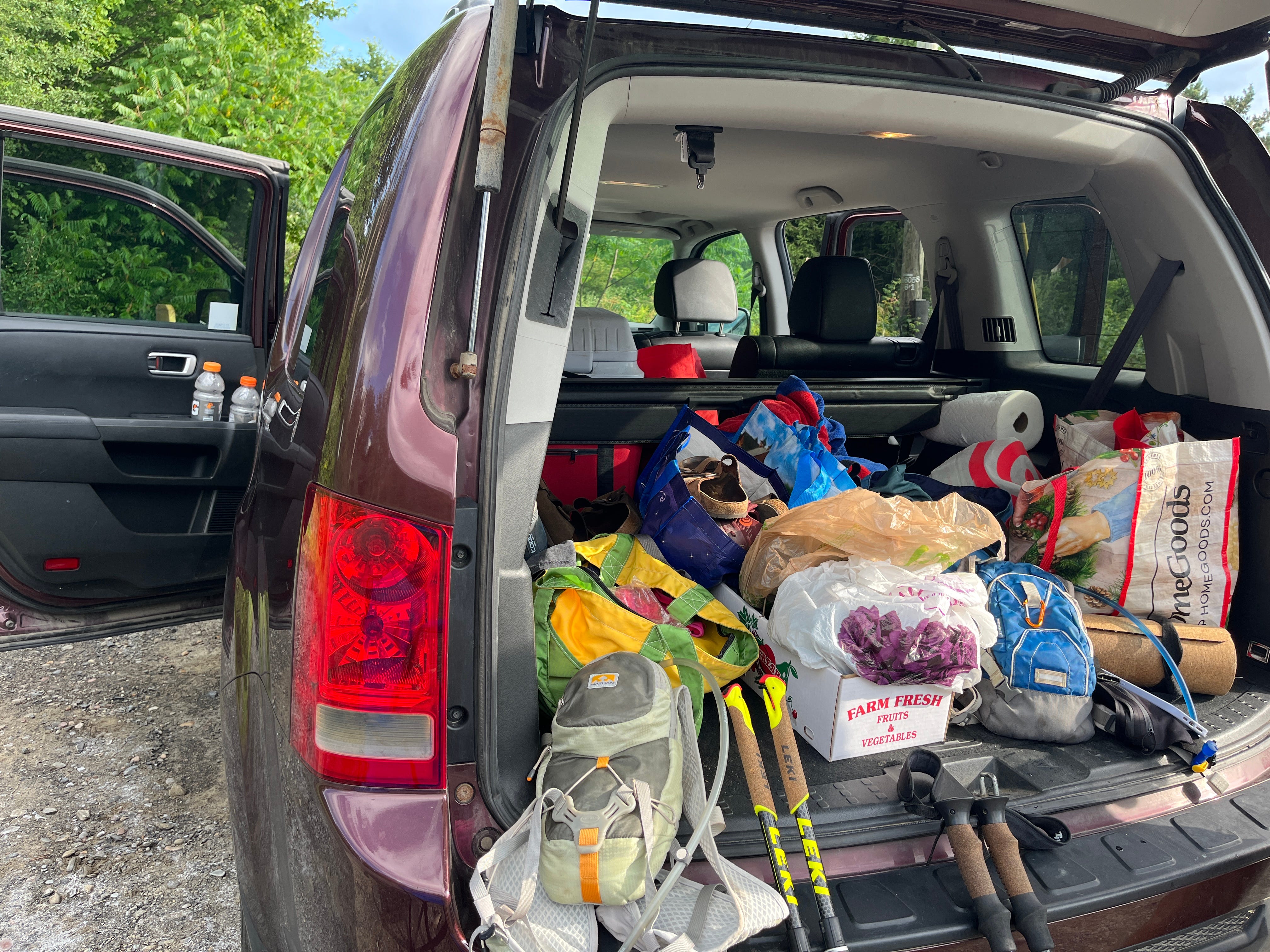 It was a short drive to this trail and when we arrived we saw Amanda King. In my overheated state, I didn’t even process that she was supporting Aaron. She walked over to us with ice and we eagerly started filling our water bottles with ice. Ours was almost gone and this felt like seeing an oasis in the desert. We chatted a bit and she gave us such great encouragement! Aaron was now beginning his 8th course while we were on our 7th. He joked that he was at a 9-10 minute shuffle. We laughed because we were hoping to not hit our highest projected time for this and to run “a bit” of the course. We agreed that after the initial flat bit, we’d run the first downhill to the turnaround at 1.5 miles. We’d then walk back up to the car. We didn’t talk about the next leg, which is a flat trail. By the time we hit the last 100 meters before the car, the heat was just radiating off the road. I quickened my step to just get away from this heat. We spent a brief time grabbing water and some food from the car before heading out. Aaron and Amanda were just heading off to do the short leg we just finished. She gave us the rest of their ice and we wished each other well.