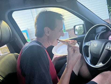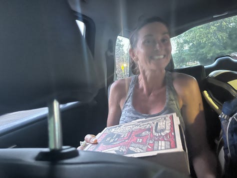 Before this trail, we got to have pizza. My request early in the day was to fit in a slice of pizza. I learned through this that I really like savory foods (and Teressa’s almond cookies) while in an endurance event. Scott went to Pizza and Bones in Dryden to pick up some slices for us all!