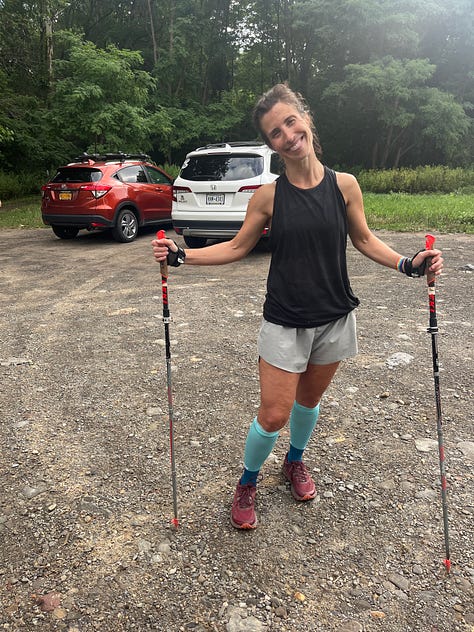 However, we were nearing a marathon distance and it was 90 degrees and humid. Luckily we packed our poles from our Mountain Running Camp. I had tried them out on my recent Lick Brook run with Sarah Giesy. They worked great so I was pretty psyched to use them today!