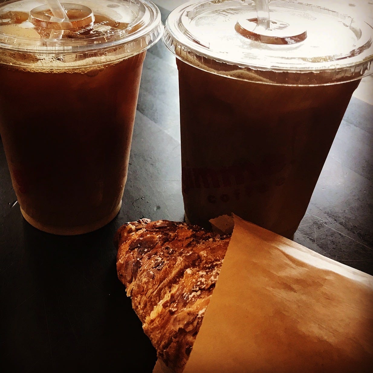 Scott and I sauntered across the street with our sopping wet hair and sweaty limbs and stood in line for our special morning treat. I got my usual cold-brewed coffee with oat milk and an almond croissant and Scott tried a fun coffee flavor and joined me in selecting a croissant. We drove home chatting about our amazing class and vowed to make it a weekly thing.