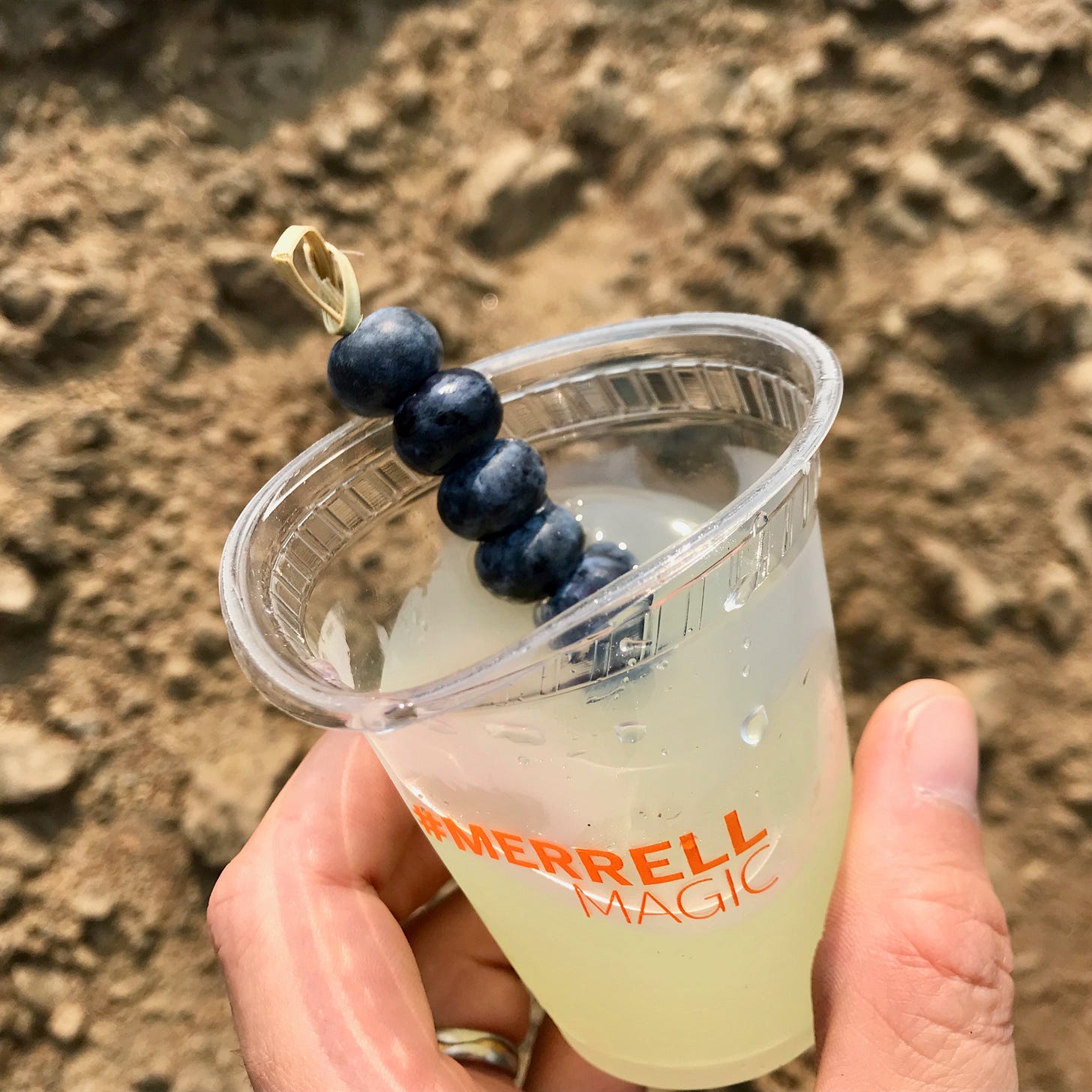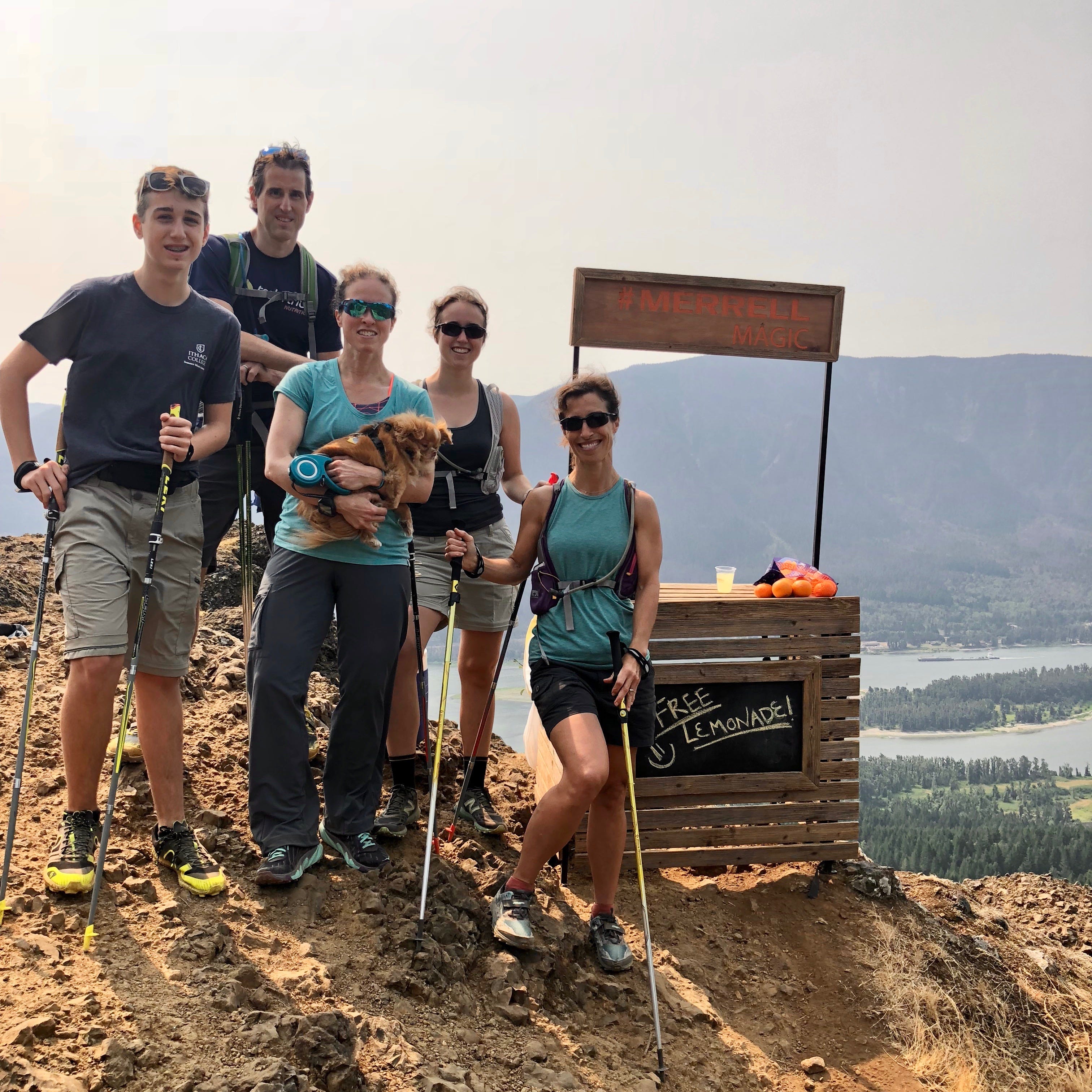 As we neared the top of a long series of switchbacks we saw something that looked like a lemonade stand in the distance. Could this be? Were people really out on the mountain with a lemonade stand? As we got closer, we realized that yes indeed this was a lemonade stand!! Merrill partnered with Backpacker Magazine as part of their Merrill Magic campaign. A couple was manning the station, offering lemonade with lovely little blueberry skewers. We spent a long time up there chatting with them, enjoying the lemonade and the views.