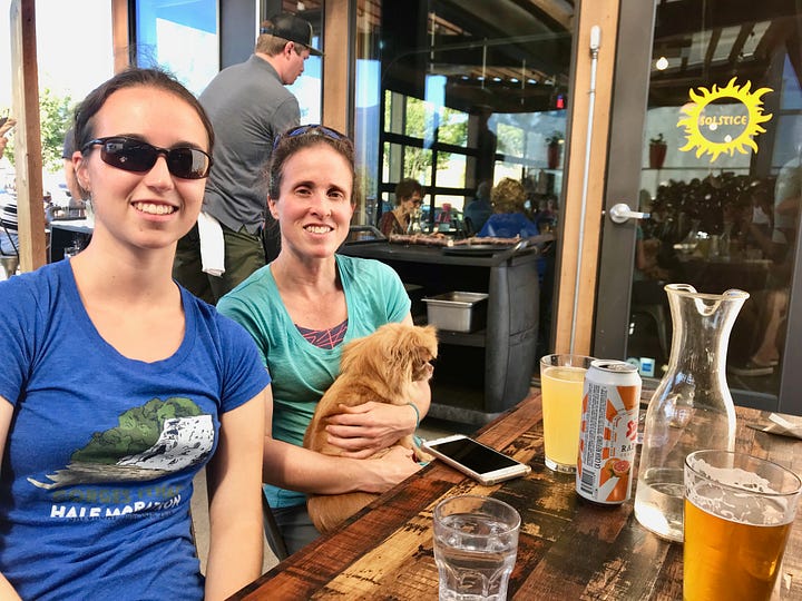 Scott and I wanted to have beer so we thought we’d head to Hood River and hit a brewery. Elizabeth and Xander love Hood River and it was a perfect day to head there. Upon arriving at our brewery choice, Scott and I went in to inquire about the dog accommodations and the wait time. The wait was reasonable, but the dogs were required to be separated from owners in their own dog area. That wouldn’t work for sensitive little Quiggly so we searched out another alternative. We found Solstice; a lovely little pizza place with great outdoor seating. They welcomed dogs, allowing them to sit with their owners on the patio. A bonus? They could seat us right away!