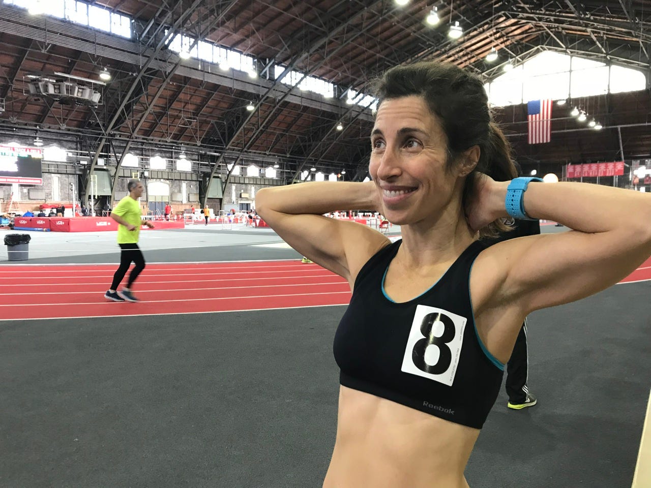 Somewhere around lap 6 the woman in 5th place overtook me and I dropped to 5th in our pack. I would have had to speed up my splits to catch her and I had become mathematically married to those splits. Even though I felt I had more energy, I was worried that if I sped up too much I could lose it on the last lap. I stayed where I was. Today was not about winning for me, it was about finishing strong.