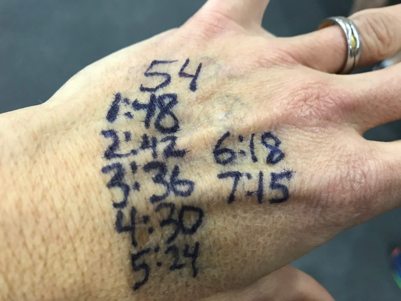 I’m so glad I wrote my splits on my hands