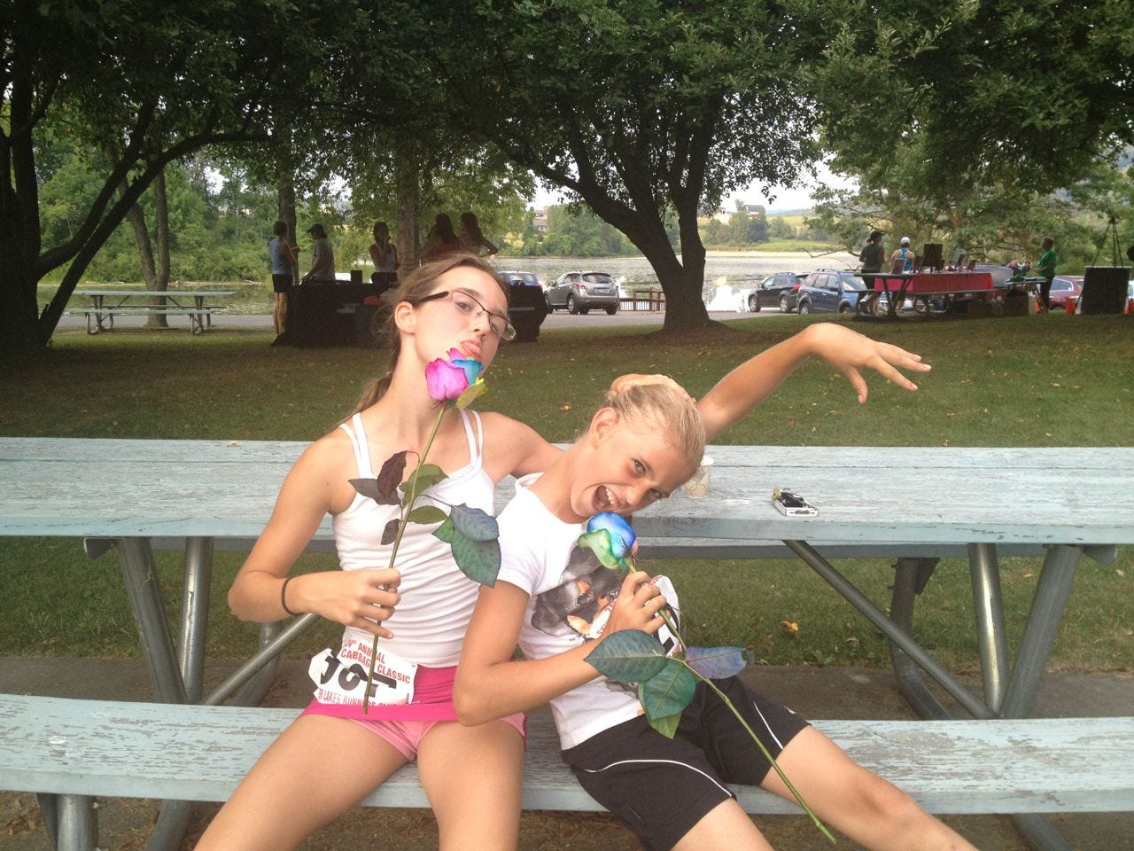 At the end of the race, they were giving out roses to people doing the Women’s Distance for the first time. Kathey gave Elizabeth her rose, and the girls had fun posing with them. We enjoyed a yummy dinner together at local Thai place, Tamarind after the race.
